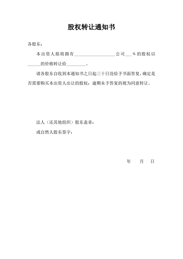 股权转让通知书(指导版)