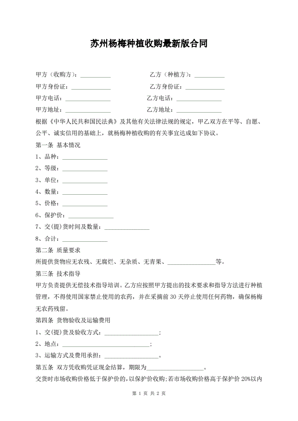 苏州杨梅种植收购最新版合同