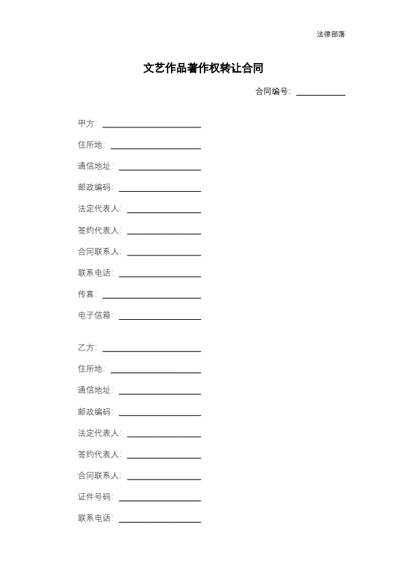 文艺作品著作权转让合同