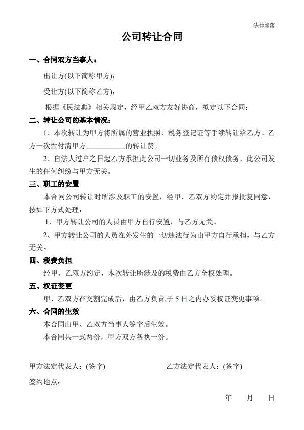 公司转让合同范本