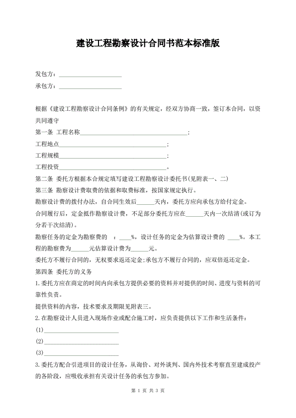 建设工程勘察设计合同书范本标准版
