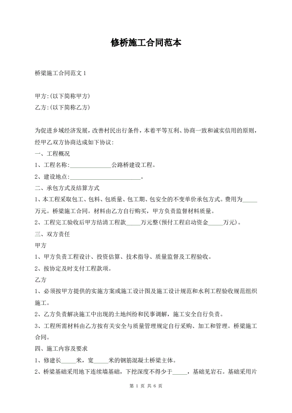 修桥施工合同范本