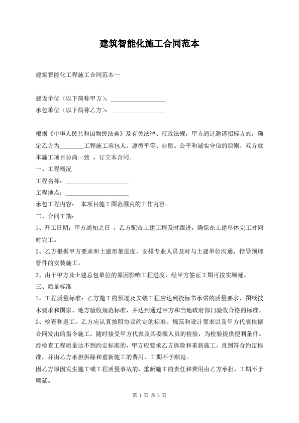 建筑智能化施工合同范本