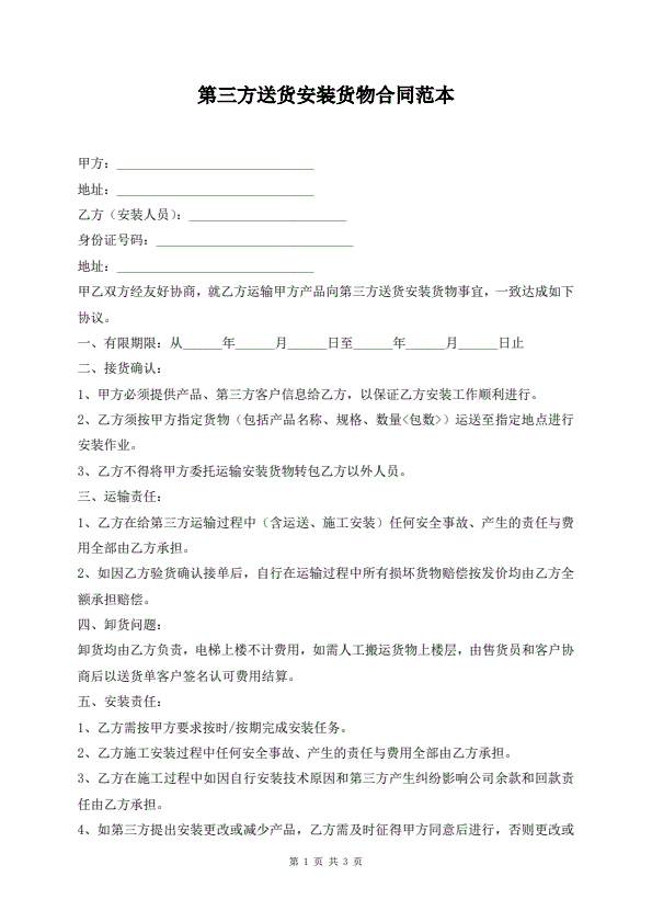 第三方送货安装货物合同范本