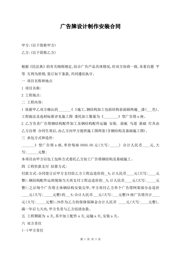 广告牌设计制作安装合同