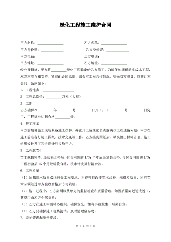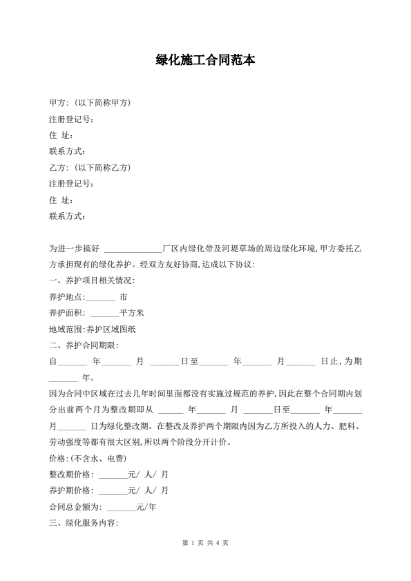 绿化施工合同范本