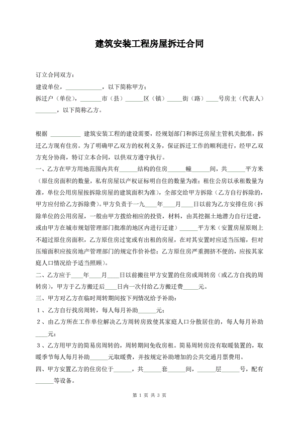 建筑安装工程房屋拆迁合同