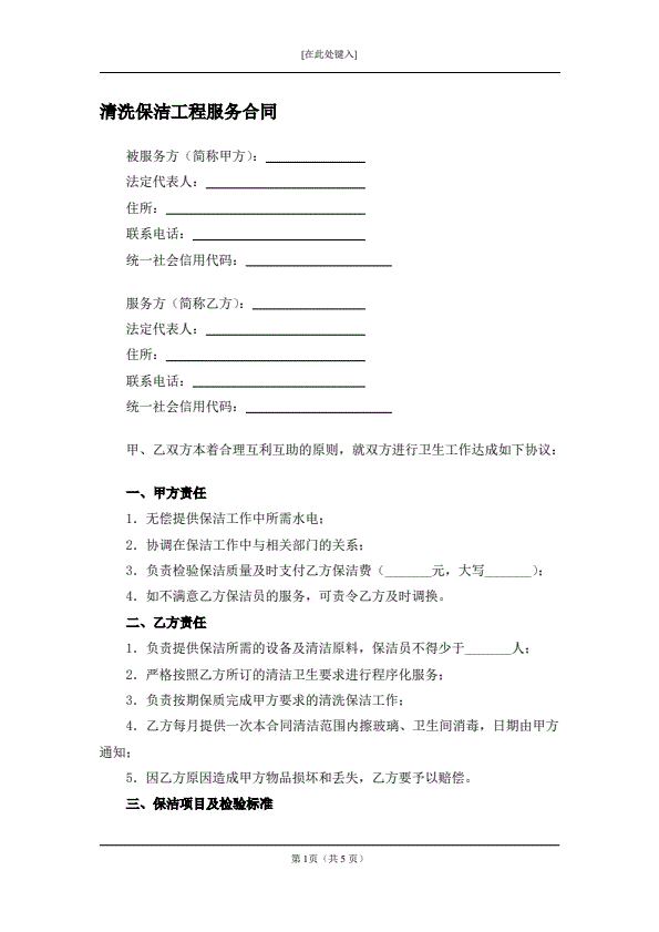 清洗保洁工程服务合同