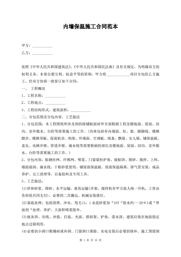 内墙保温施工合同范本