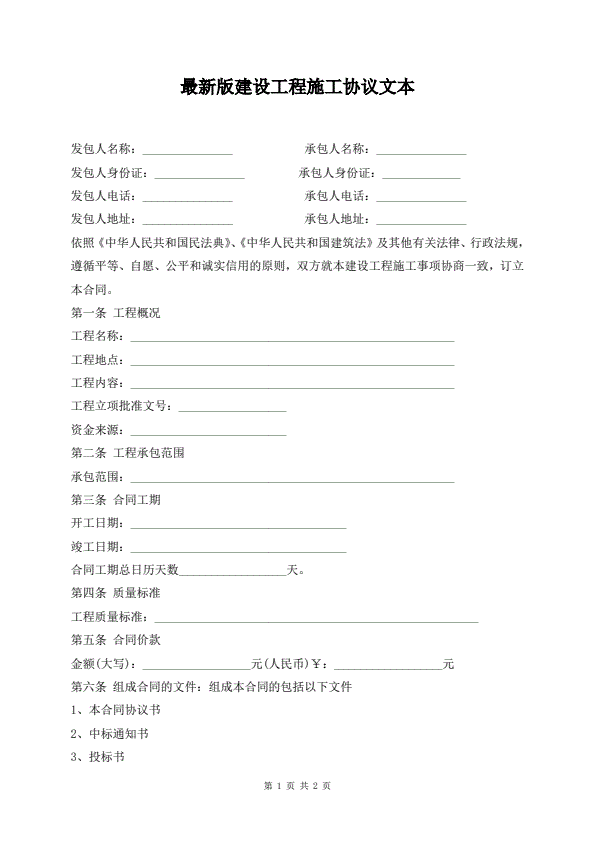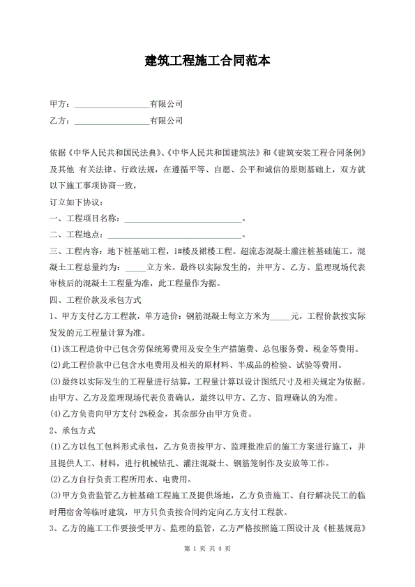 建筑工程施工合同范本
