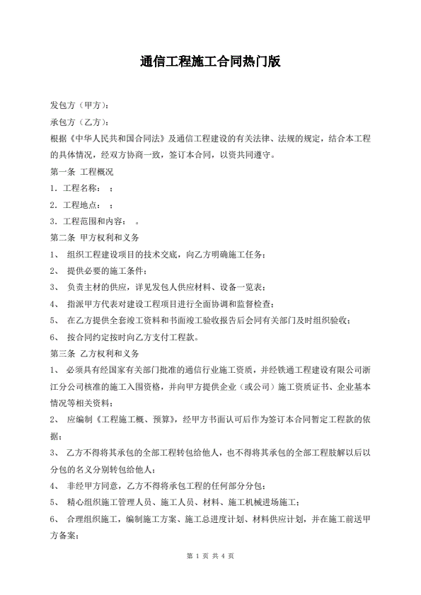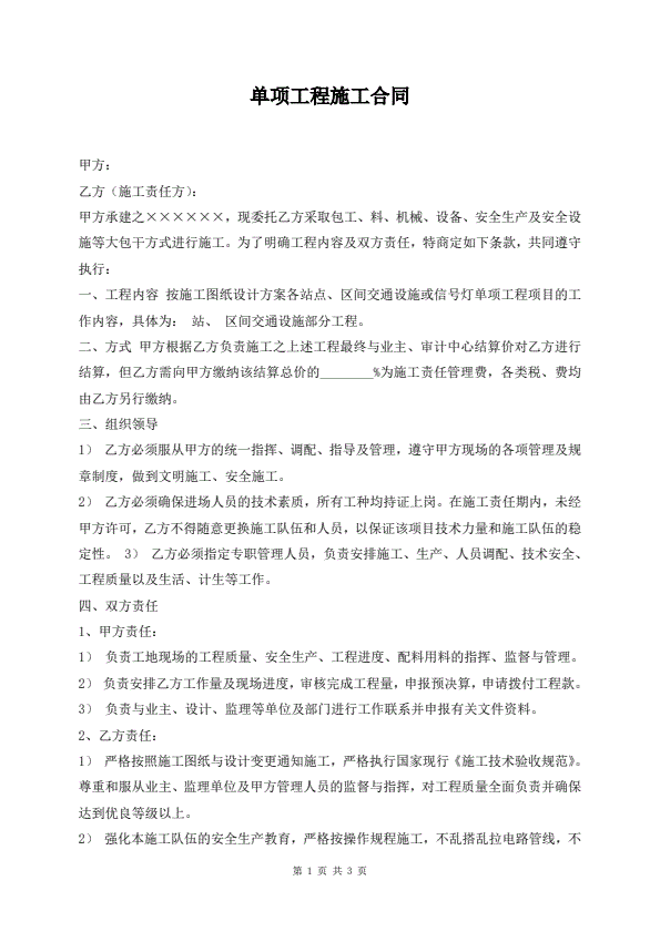 单项工程施工合同
