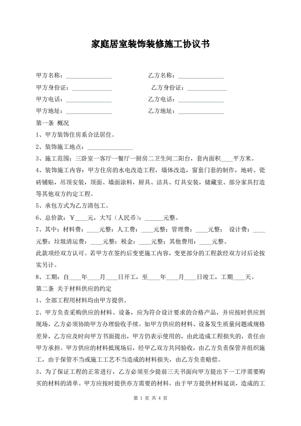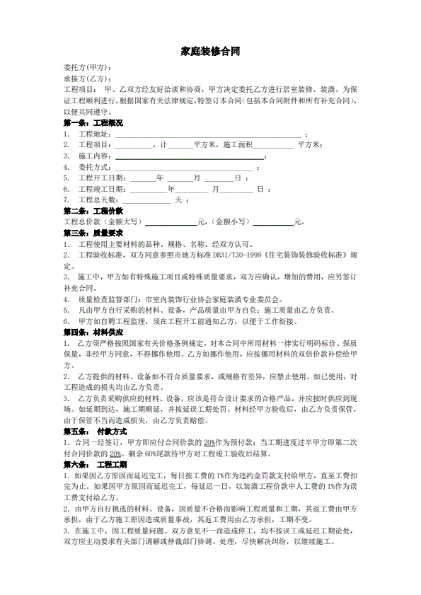 家庭装修合同