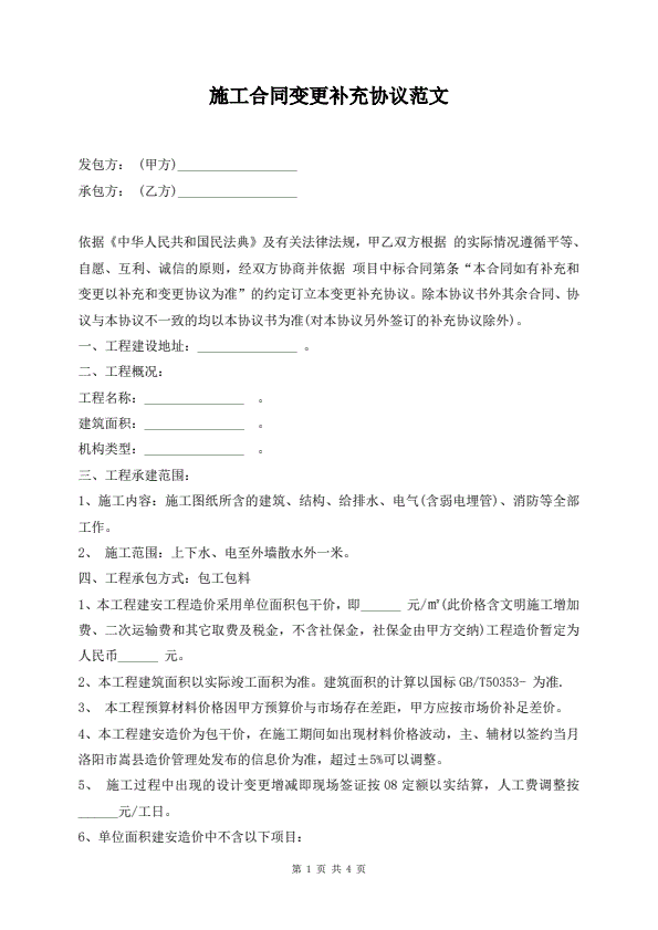 施工合同变更补充协议范文
