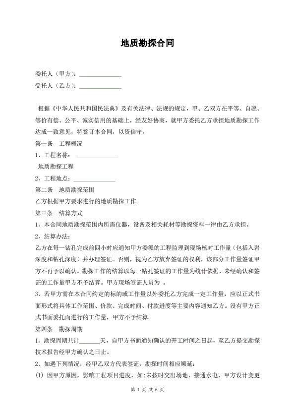 地质勘探合同