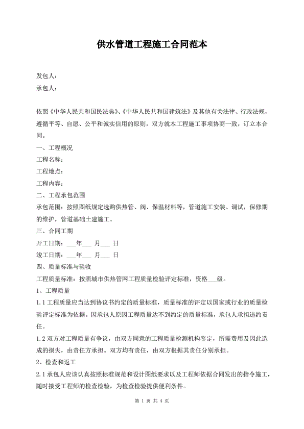 供水管道工程施工合同范本
