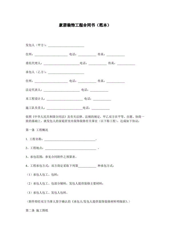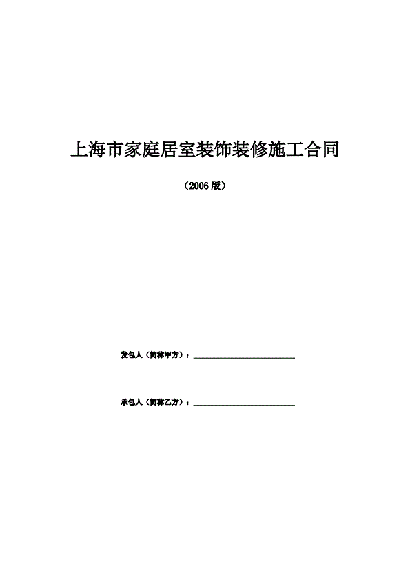 上海家居装饰装修施工合同示范文本