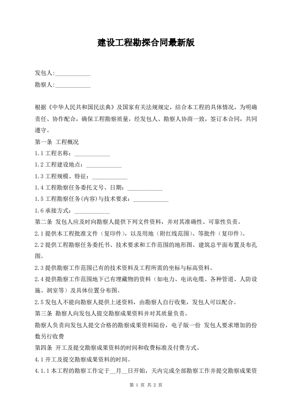 建设工程勘探合同最新版