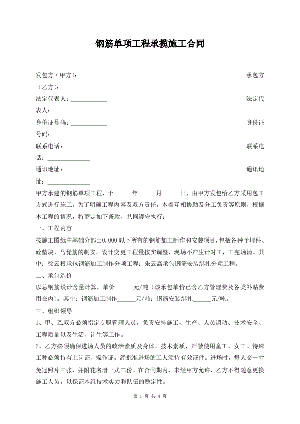 钢筋单项工程承揽施工合同
