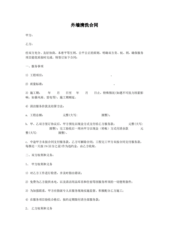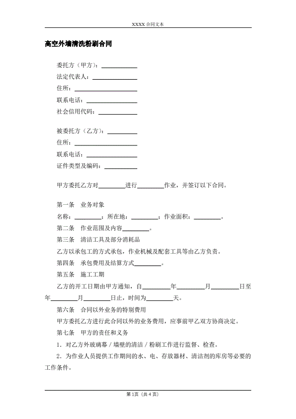 高空外墙清洗粉刷合同