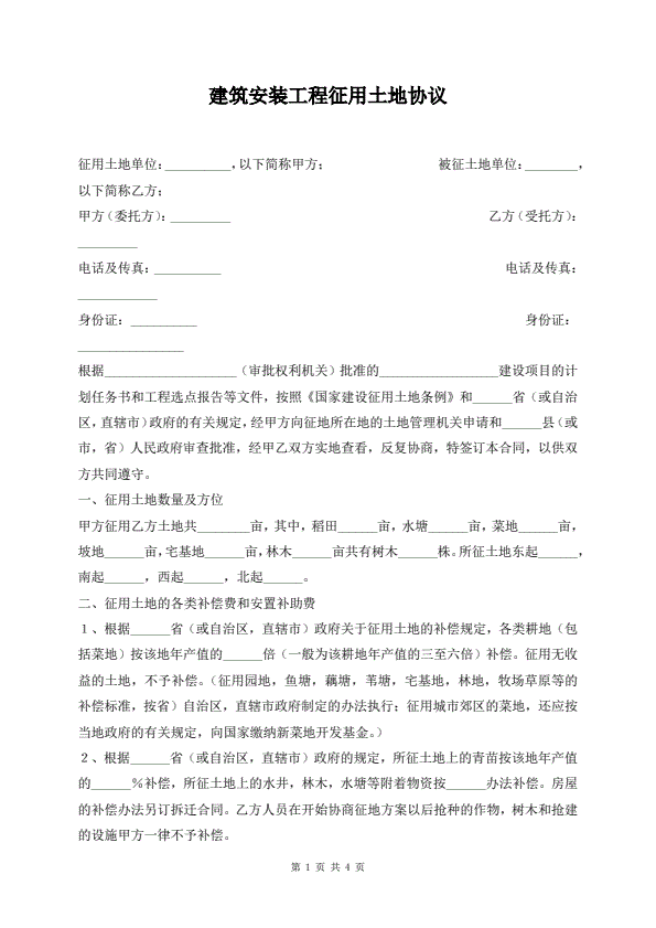 建筑安装工程征用土地协议