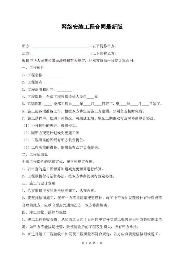网络安装工程合同最新版