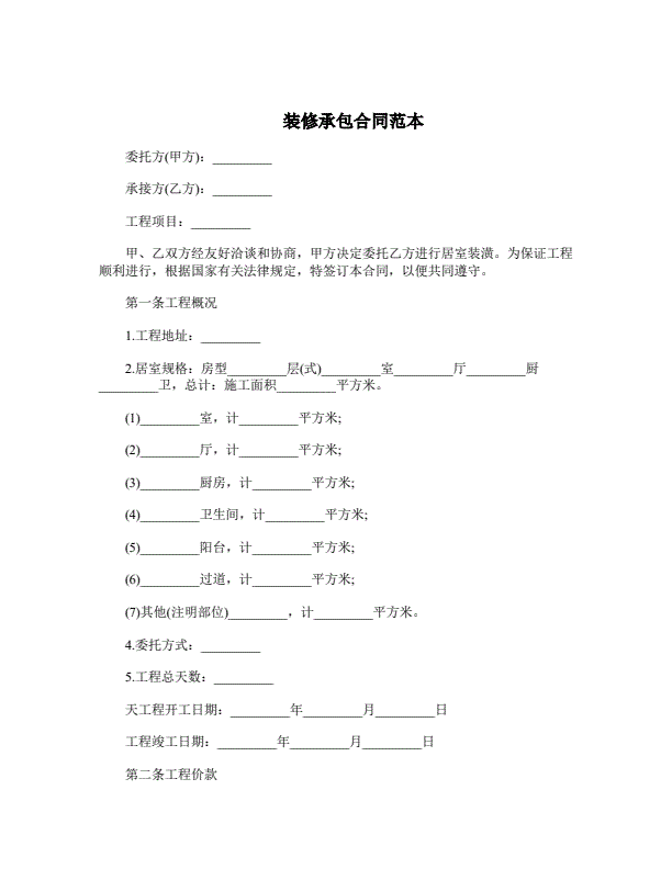 装修承包合同范本