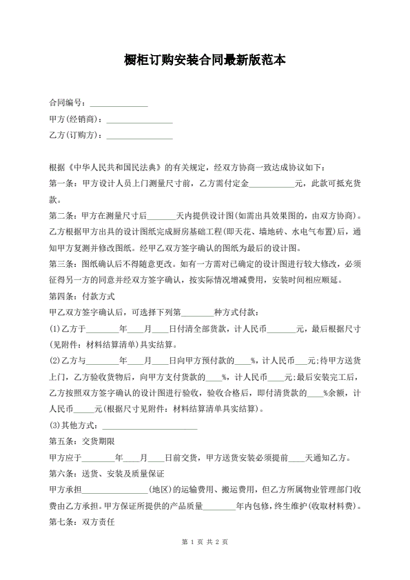 橱柜订购安装合同最新版范本