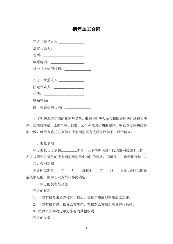 钢筋加工合同