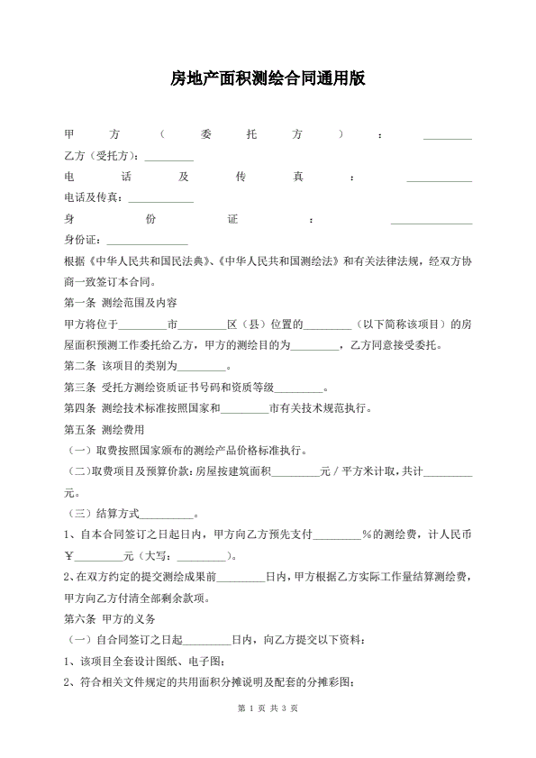 房地产面积测绘合同通用版