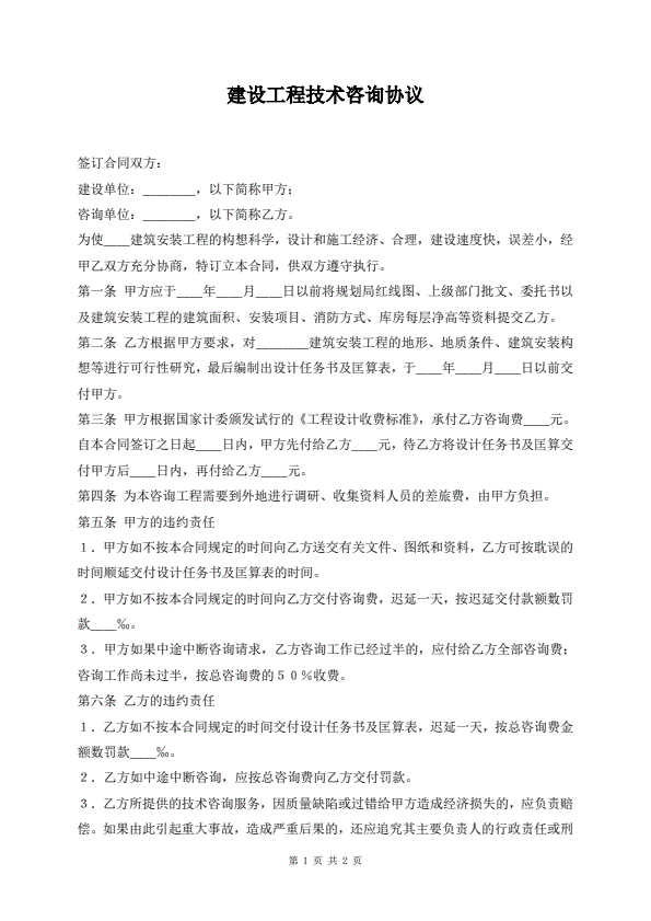 建设工程技术咨询协议