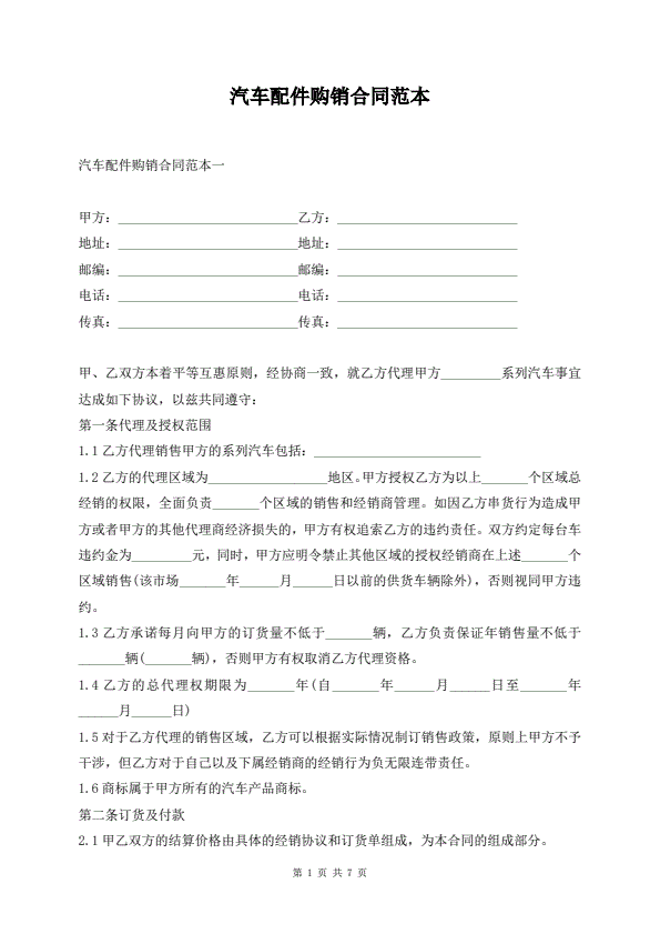 汽车配件购销合同范本