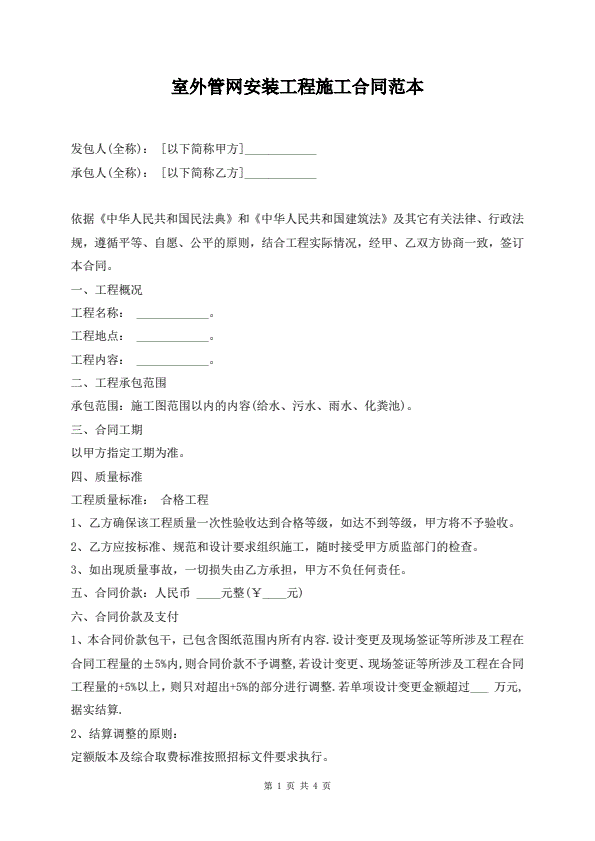 室外管网安装工程施工合同范本