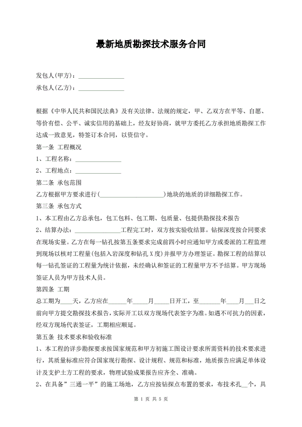 最新地质勘探技术服务合同