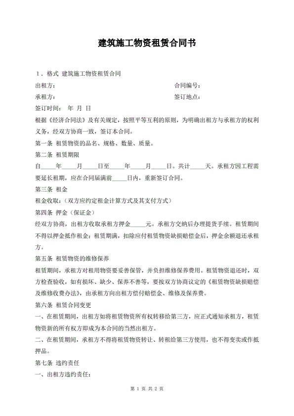 建筑施工物资租赁合同书