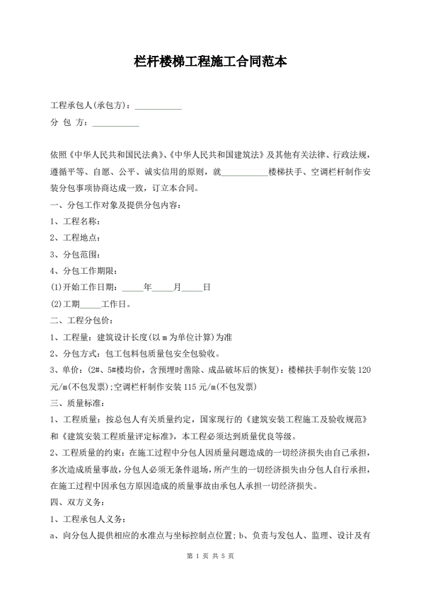 栏杆楼梯工程施工合同范本