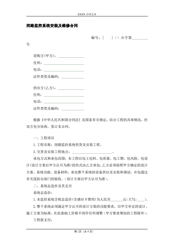 闭路监控系统安装及维修合同