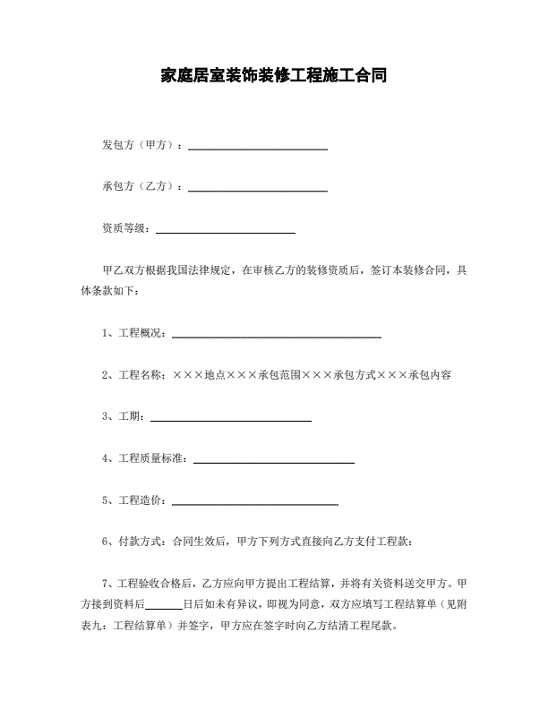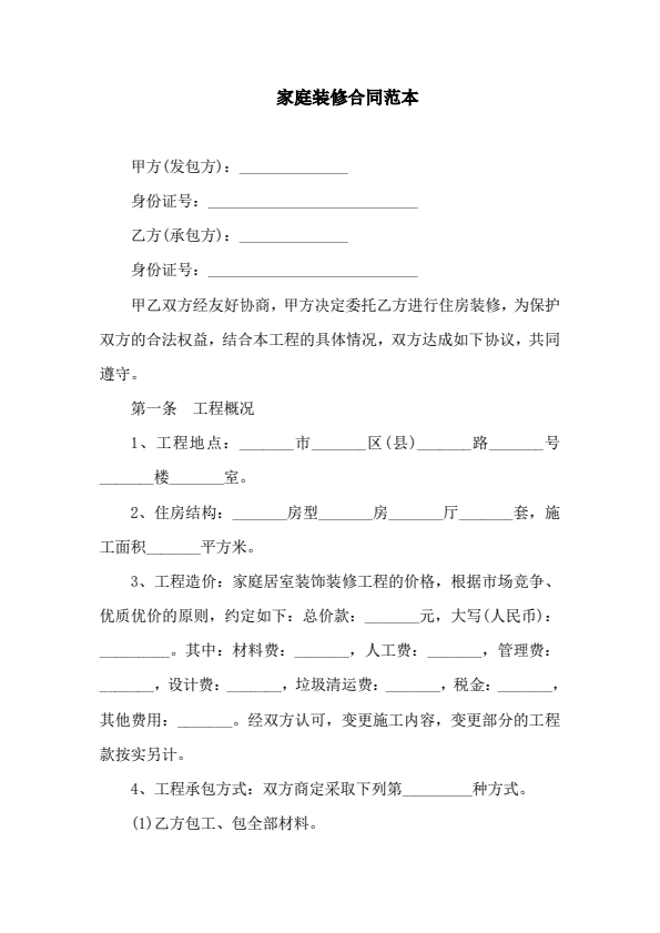 家庭装修合同样本