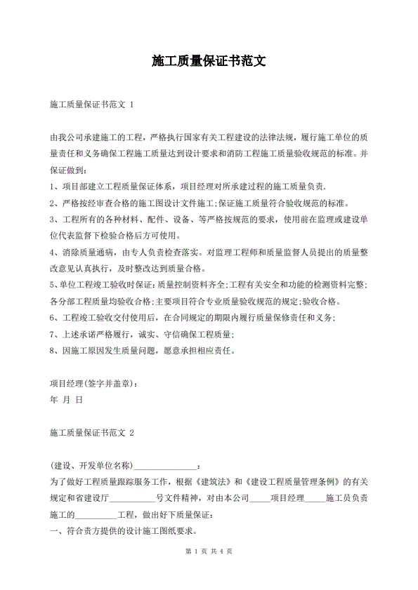 施工质量保证书范文