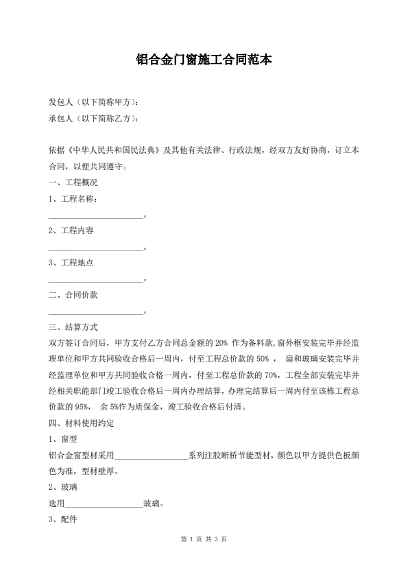 铝合金门窗施工合同范本