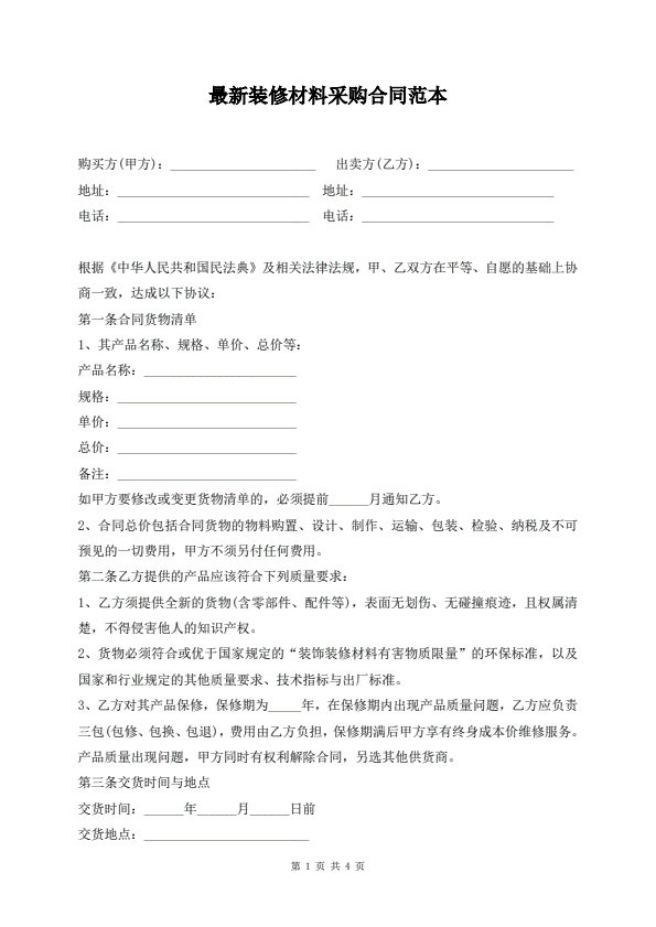 最新装修材料采购合同范本