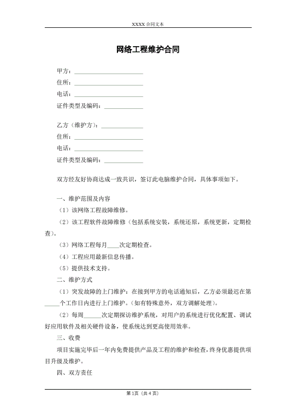 网络工程维护合同
