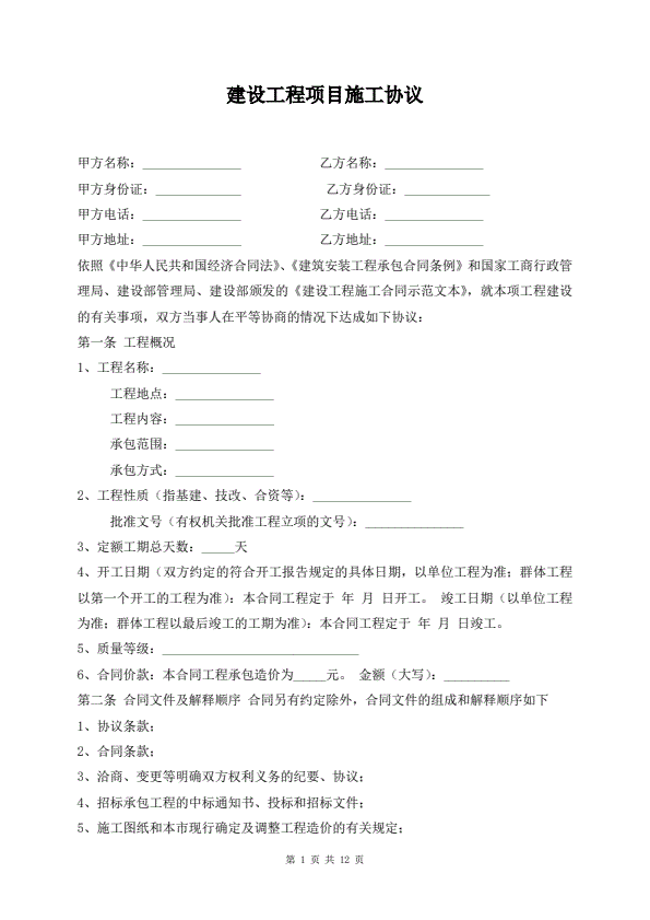 建设工程项目施工协议
