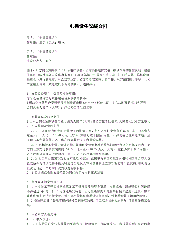 电梯设备安装合同