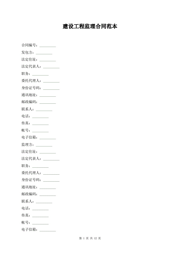建设工程监理合同范本