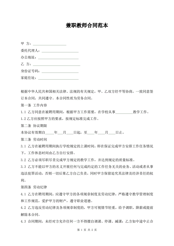兼职教师合同范本