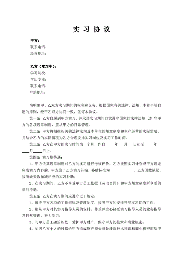 实习协议