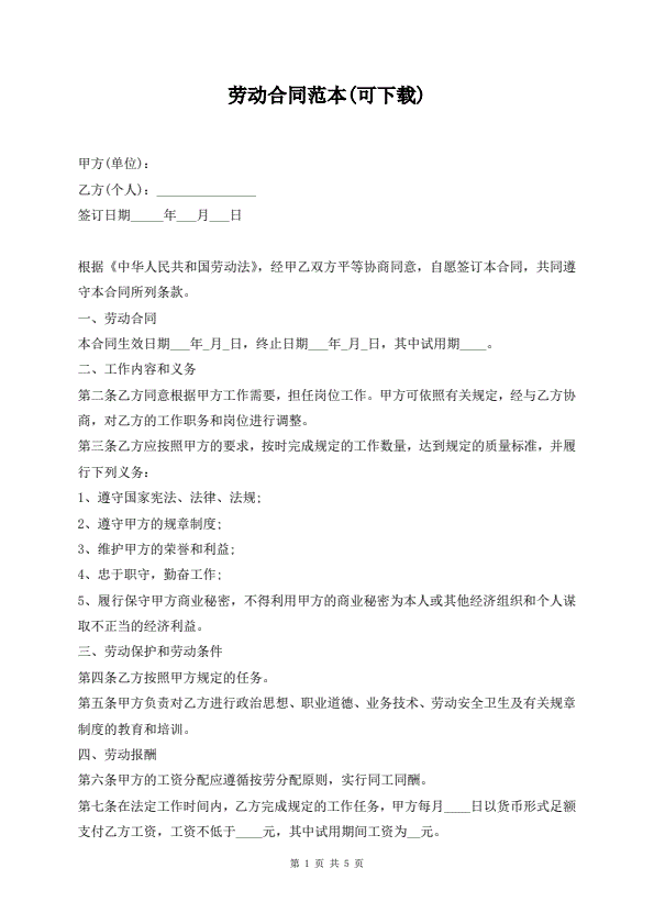劳动合同范本(可下载)