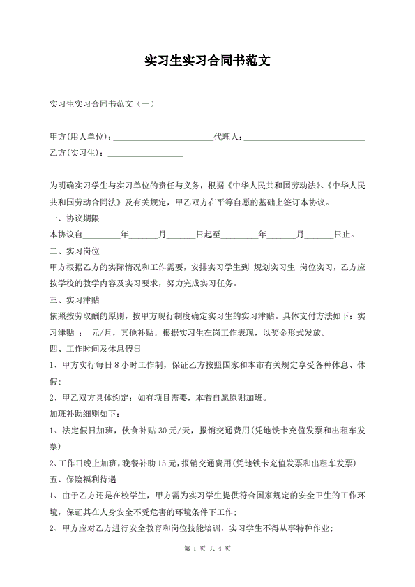 实习生实习合同书范文
