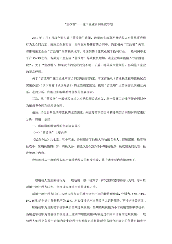 针对营改增施工企业合同操作指引