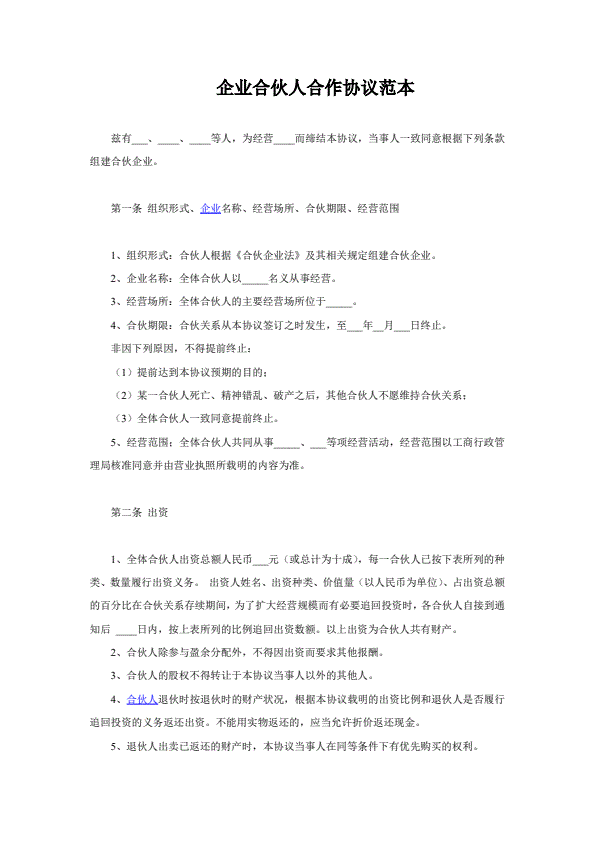 企业合伙协议书